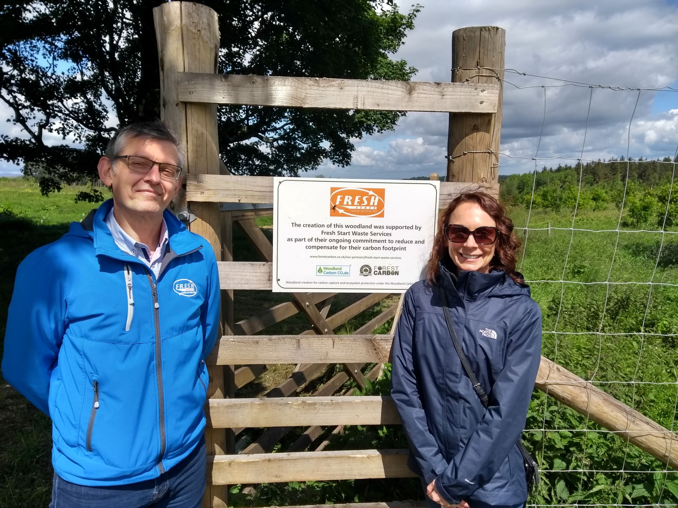 Fresh Start Waste started working with Forest Carbon in March 2019, aiming to mitigate as much of their operational footprint as they were able to collect data for. This includes so far all waste collection mileage, office and depot energy use, staff travel, and business consumables such as paper, food and drink. CEO Nicola McGrath and Commercial Director Colin Harvey visited their first project, The Gangway at Lowther in Cumbria, in 21st June 2019. The new 13.5 acre woodland, part of a much larger sustainable forest creation programme, will capture 2,125 tonnes of CO2.