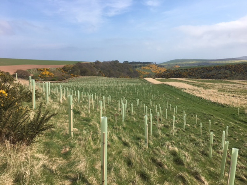 The new woodland at Arnott's Loan will be a native Oak woodland on an appropriate and fertile sheltered site. The planting will connect two areas of existing mature native Oak woodlands, both SSSIs. The woodland has been planted with feathered upper edges to ensure sympathetic appearance in the landscape and improve habitat for Black Grouse. All planting stock was of local origin.